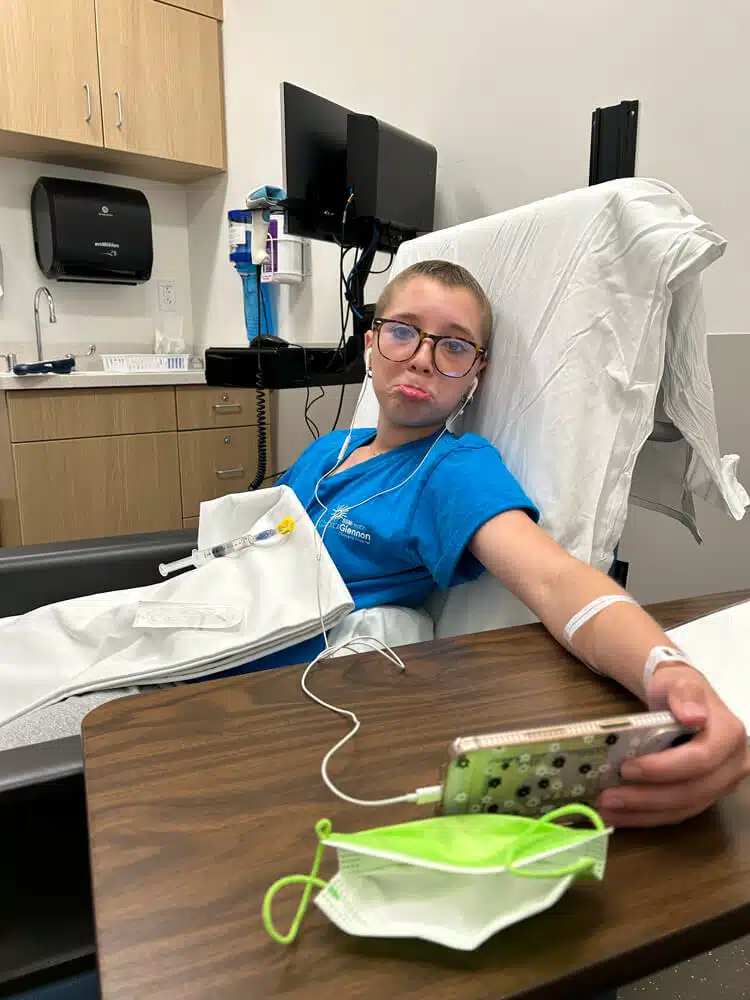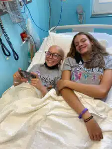 “The first cycle was definitely the toughest on her,” Julie said. “Ambrea had terrible jaw pain and some neuropathy to her feet. She had sores affecting a lot of the mucosal lining in her body and lost 10-12 pounds. She had transfusions of blood and platelets after 3 of her 4 cycles, and also had an overlapping histoplasmosis fungal infection at one point in her lungs,” Julie said. “She honestly tried to sleep her chemo admissions away as much as she could. Her favorite nurses really knew her as a person. They knew she loved dancing, skin care and makeup. They also knew when she needed to rest and protected her peace as much as possible.”