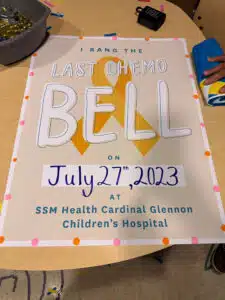 “Fortunately, Ambrea’s body got a little tougher each month. She completed her final cycle and rang the bell on July 27, 2023.” The histoplasmosis infection made it challenging to interpret her CT and PET scans for a while. The abnormal findings that would occur on her scans had to be scrutinized for what was lingering effects of histoplasmosis vs. evidence of cancerous disease,” said Julie. “In addition to regular PET and CT scans, she’ll need echocardiograms, pulmonary function tests and possible reproductive consult long into the future. The chemotherapy agents used to treat her cancer put her at risk for long term effects on her heart, lungs and reproductive system.