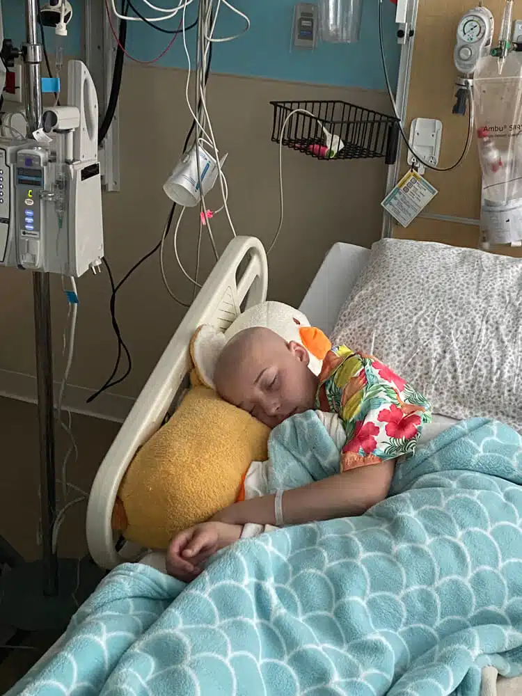 Ambrea was admitted to the hospital on Tuesday, April 18, 2023 to begin treatment. She had surgery to place her port, which is her central line for chemo delivery. She had a bone marrow biopsy and she began her first round of chemotherapy. Ambrea’s planned roadmap included 4 cycles of chemotherapy every 21 days. She would have inpatient chemotherapy on days 1, 2 and 3; outpatient chemotherapy on day 8, and then repeat every 21 days until completion of 4 cycles.