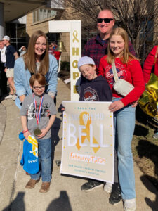 On October 16, 2022, Beckett’s family participated in the annual SSM Health Cardinal Glennon Sun Run with his team of friends and supporters, “Beckett’s Battalion”. Their team raised over $10,000 and Beckett walked a full mile at the event! “A year ago at this time, he couldn’t even stand on his own two feet from all of the pain,” commented Samantha that day. “How far he has come….we have all come…in this past year. It was 363 days ago when our tiny warrior was diagnosed with leukemia. 362 days ago Beckett had his first chemo treatment. 255 days ago Beckett achieved remission. He will win this battle, and we have Cardinal Glennon to thank for that. This year has been the hardest year of mine and Kenny’s lives, yet we’ve been filled with more faith and gratitude than ever. We are all counting down the days until he rings that bel. We know that day will come….and we will celebrate big! Until then, we will all keep fighting!”