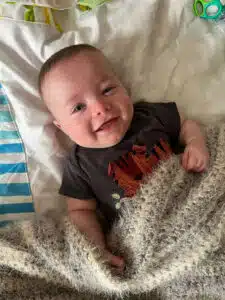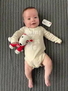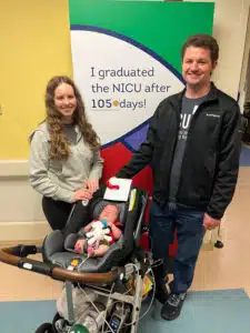 Hannah and Dominic received CPR training, training on oxygen delivery and training on monitoring equipment prior to Dean’s discharge. The initial plan following discharge was for Dean to get established with his pediatrician, have regular visits with developmental therapists and return to NICU follow-up clinic every 4 months. On May 14, just two days after his original due date of Mother’s Day, May 12, Hannah and Dominic celebrated taking Dean home from the NICU.