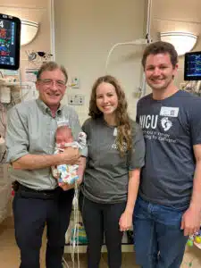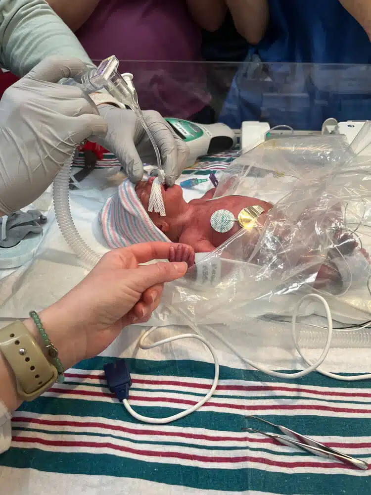 “I was in route to St. Clare to round on patients when I got the call from the Emergency Room,” said Claassen. “I pulled into the circle drive and ran in to announce that I was the neonatologist on call. I knew I was responding to an infant resuscitation but was surprised to see a 25-weeker in the trauma bay,” Claassen said.