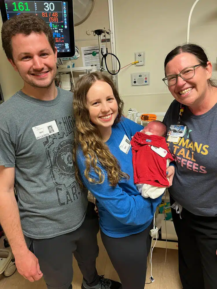 The feeling of growing a new life can be exciting and awe-inspiring, but is also common to feel anxious, vulnerable, and overwhelmed by the big changes that pregnancy and a new baby will bring – especially with a first pregnancy. Hannah and Dominic from Imperial, MO were grieving the loss of Dominic’s mom and her 4-year battle with pancreatic neuroendocrine cancer in September, 2023. They found out Hannah was pregnant just two days after her passing. “The beginning of my pregnancy was perfect,” Hannah said. “We were sad we couldn’t share it with Dominic’s mom, but it was a positive emotional distraction from the grief our family was experiencing,” Hannah said. Dominic is an electrician for MSD and Hannah is a Team Lead at Target, Gravois Bluffs in Fenton. “I was going to my OBGYN regularly, and there were no indications of anything other than a healthy baby. Our anatomy scan at 20 weeks revealed that our baby was a boy, and my due date was Mother’s Day, Sunday, May 12!” Hannah said. After the buzz of the holidays, during the month of January 2024, Hannah and Dominic were excited to focus some time and energy around Baby Balassi. “We hadn’t settled on a name or packed a hospital bag yet,” Hannah said, “but we felt like we had plenty of time to do things over the next several months.” On January 29th, Hannah began experiencing intense stomach cramps which kept her up through the night. “Being 25 weeks pregnant, of course, I got on Google and started looking up reasons for cramping,” Hannah said. “I read that many times the uterus is growing and that cramps can be an effect of your ligaments stretching. The pain would come and go, and I also thought that I might be constipated. I figured I would just call my OB when the office opened.” Monday morning arrived, and Hannah reported for her shift at Target at 8:00am. “I debated calling off work and staying home to rest,” Hannah said. “But since I am a manager, I have daily tasks that need to be completed by end of day on Mondays so I figured I would go in for a few hours to complete those tasks, “Hannah said. “Driving to work was awful. The cramps were very extreme, so much so that I couldn’t’find a comfortable way to sit. But then they would go away and I felt I was just overreacting,” Hannah said. “I went into work and did an order pickup to start my day like usual. The cramping was so extreme that I would have to take a break from walking and take deep breaths to get through the pain. I finally was able to sit down at the computer and work on pre-tieing planograms for the upcoming weeks. I felt constipated and could not find any comfortable way to sit. I had a hard time focusing on the computer screen because my vision would go blurry while I was having cramps. I just kept taking deep breaths, Hannah said.”