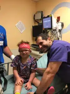 Within the next few months, Fallon progressed and developed hearing loss, vision loss and febrile seizures. At this point we had to do something. We attempted a bone marrow transplant in July of 2015. Two days in of receiving chemotherapy, Fallon suffered a catastrophic seizure that lasted two days, even while intubated in the Pediatric Intensive Care Unit (PICU). At this point, I didn’t know if I would ever get to hold my baby again. We put our trust in God and in the hands of the doctors and nurses. Fallon made a miraculous recovery and I was able to hold her again. She suffered a traumatic brain injury from the seizure and is closely followed by the cerebral palsy clinic.