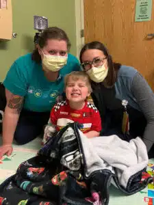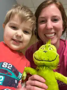 At the end of January, Graham contracted his first virus since transplant. “We are definitely navigating a new world as we figure out what an illness looks like on him,” Tori said. “We were admitted to TCU. Thankfully he didn’t have major respiratory symptoms. He did have a lot of GI issues, though, which kept him under observation in TCU for several days. The only plus of going to the hospital is knowing we are always surrounded by the most caring, talented, and thoughtful individuals. They weren’t just Graham’s care team. They became a major part of MY support system. They understand this language and culture I had been forced to learn and navigate. We shared so much together. Friends and family can’t grasp all that happened within those walls during those six months. It was incredibly difficult to leave that when we were discharged after transplant. Pediatric healthcare workers always put the kids first, but the amount of effort they put into making sure families are part of the decision-making team, informed, and supported is truly under-appreciated,” says Tori.