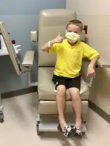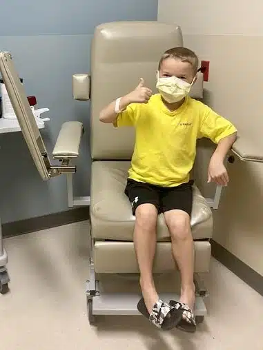 The diagnosis was devastating and Jaxson had a hard time understanding why this was happening to him. He went from taking zero medications – to a long list of medications taken at different times throughout the day. There were frequent pokes and blood draws and the family had to make multiple adjustments in order to accommodate treatments and Jax’s newly-compromised immune system. Kate stepped down from her position at a local elementary school to facilitate Jaxson’s care. Ryan (a firefighter) worked extra shifts in order to make ends meet. Jaxson’s three brothers (Ryan, Grayson and Caden) made adaptations, as well. They were not only worried and concerned about their brother, but they had to miss school, sports and cancel plans throughout Jaxson’s frequent admissions to the hospital. “Kidney disease does not just impact the one who is battling the disease. It definitely impacts the entire family,” Kate said.