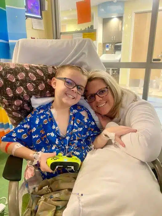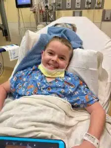 The stress of being at dialysis three days per week for 3 ½ hours each time took its toll on Jax’s family. Leaving home no later than 6:00am; driving from Wentzville (45 miles) while juggling 3 other boys and getting them off to school; navigating Ryan’s work schedule and trying to maintain normalcy at home and in life; it was exhausting. In April, 2022 Jax underwent another surgery to place a peritoneal dialysis catheter in his belly. After a 2-3 week healing period, Ryan and Kate were trained how to work the dialysis machine, troubleshoot, take blood pressures and change catheter dressings. They learned signs and symptoms to look for if Jax was to need additional care, which fluids to use, how to add medication to the fluid and even subcutaneous injections. “Even though there is a lot of work that goes into peritoneal dialysis, there were so many advantages to it. It’s easier on the body and doesn’t make you feel exhausted like hemodialysis does. Jax would also have more freedom when it came to food and drink choices which is huge being his age and just wanting to be a kid. I was confident that Ryan and I as a team would be perfectly ok and do great at caring for our boy at home. Jax would have dialysis at night through that catheter while he slept instead of having hemodialysis at the hospital. It was a game changer for both Jaxson and our entire family,” said Kate. “These months were some of the toughest times our family had ever been through. I’ve never felt so lost, broken and defeated. As a parent, you’re supposed to be able to fix all the problems. This one I couldn’t. But I knew I would do anything to make sure my son had the best care possible,” Ryan said.
