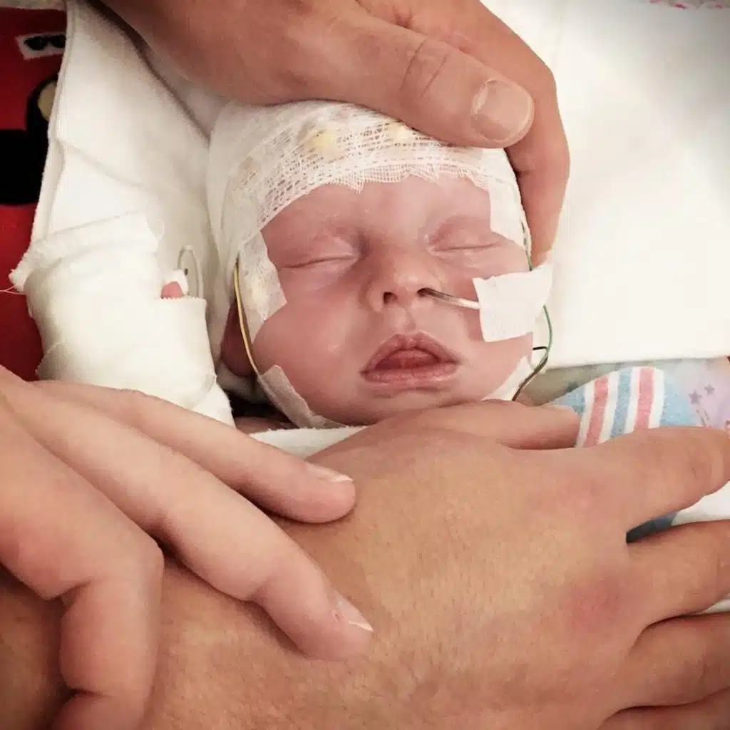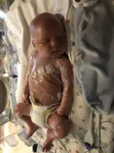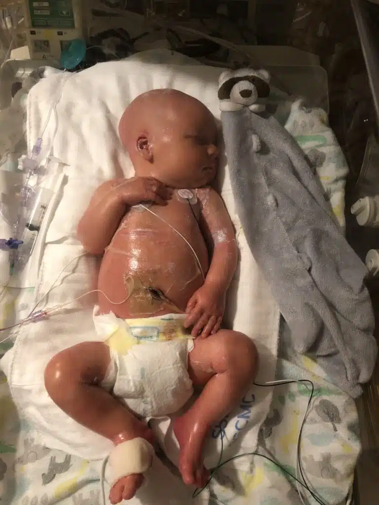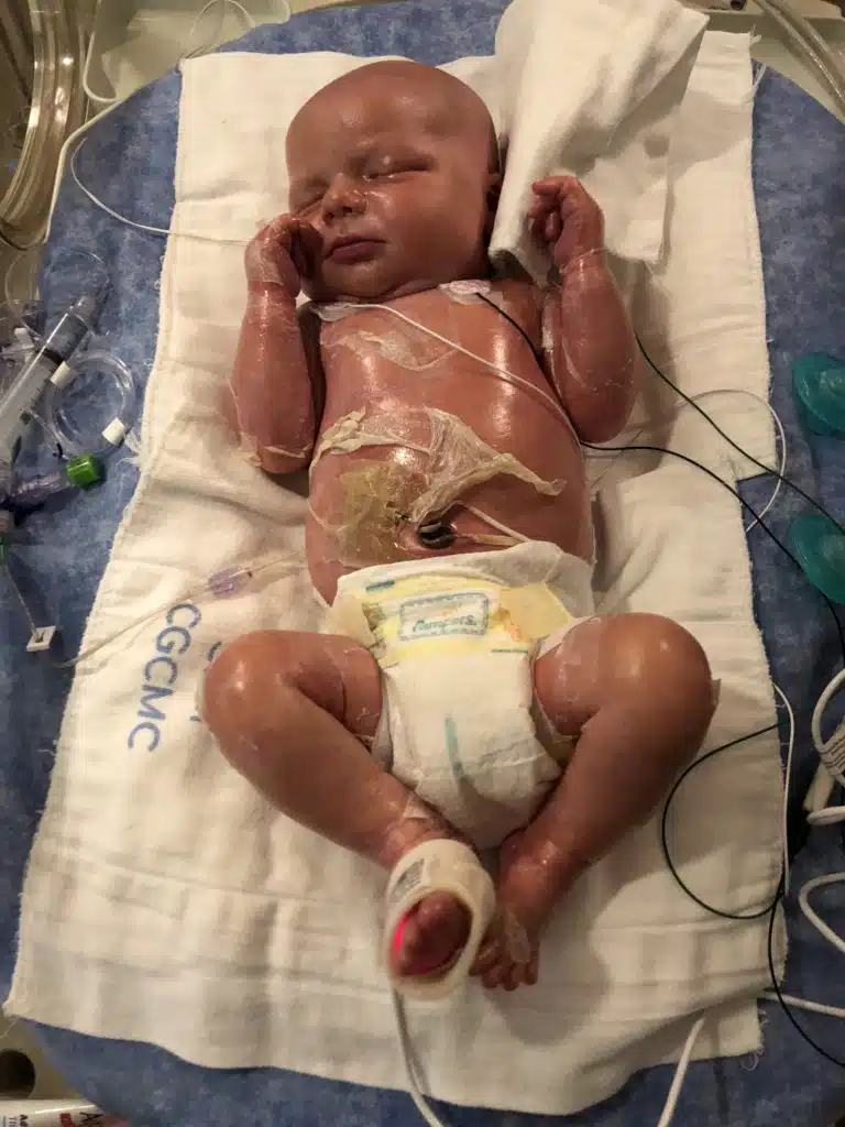 dermatological issues. Understandably, this was heart-wrenching for Erica and Randy, but Erica knew from the moment he left her arms that he was in excellent care – allowing her heart and mind to never doubt his well-being once he arrived at Cardinal Glennon. Caratacus was transferred to Cardinal Glennon’s NICU, where a team of specialists was lovingly awaiting him. His skin condition was much more severe and painful than what was experienced with Margot.