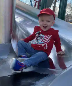 In October of 2021, Jennifer and Brian took their 2 year-old son, Ollie to Urgent Care for a persistent belly ache. He had been saying his belly hurt on and off for a few weeks, but it had gotten worse for him after a fall on the playground. Knowing that COVID could present as gastrointestinal symptoms in toddlers, they wanted to look into his general belly ache for that if nothing else. Ollie had what they characterized as a bloated belly; however it had looked like a “toddler belly” on and off for months. Nothing seemed abnormal.