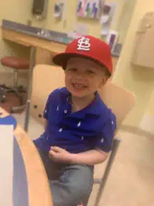 It was a Sunday morning when Jennifer wanted to take Ollie in, but few if any places were open for appointments. Jennifer and Brian found an opening at an SSM Health Cardinal Glennon Urgent Care. Ollie had vital signs taken, a pulse oximetry test – all of which came back normal. The nurse practitioner felt his belly, sensed something wasn’t quite right, and got an X-ray of his belly. He also got a COVID test, and some Miralax and an enema – just in case it was a case of constipation. Ollie’s COVID test was negative, and the enema produced no results. Twenty-four hours later, on October 25, the urgent care called Jennifer and Brian, telling them that the radiologist wanted Ollie to be seen in the Emergency Department at SSM Health Cardinal Glennon.