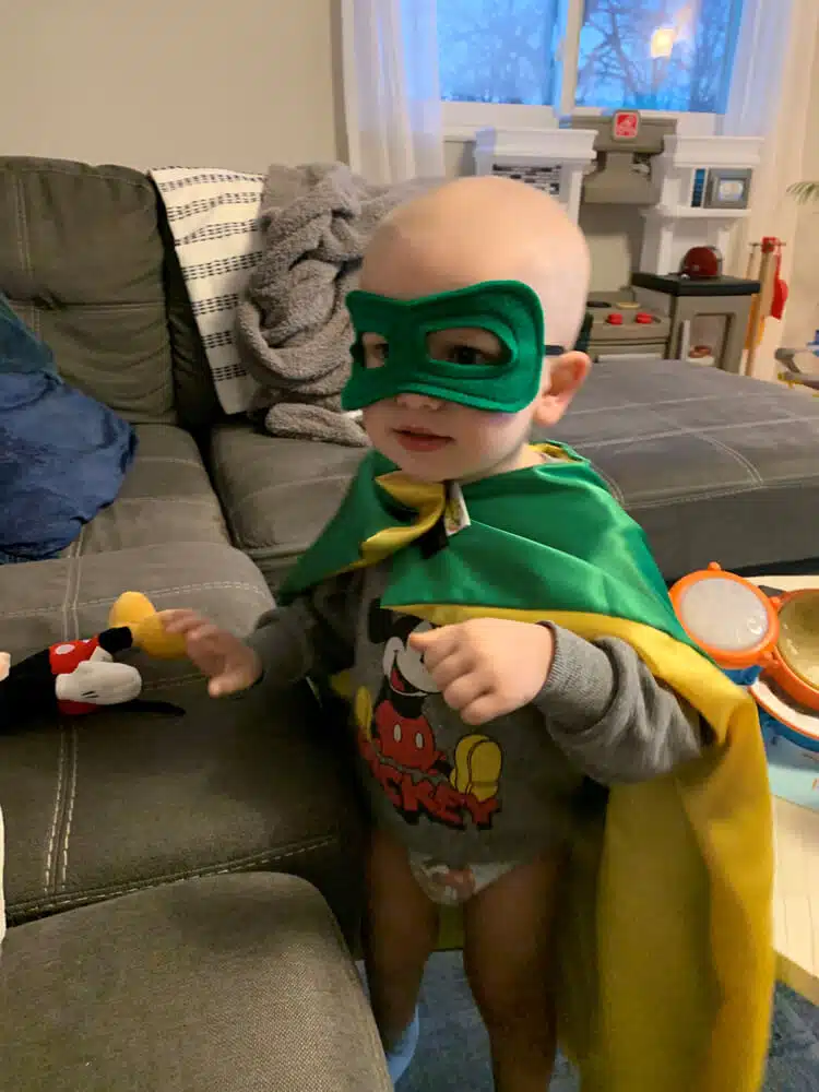 “Some of the known side effects of his chemotherapy were hearing loss and heart issues. We prayed that the chemicals worked to reduce the tumor, but also that Ollie was spared some of these big side effects of the same drugs that were required to save his life,” Jennifer said. “ “Initially, his side effects were pretty minimal. We were happy that Ollie wanted to get up and go for a walk. He also requested ‘his instruments’. He loves playing instruments and the music therapist came by to show him a variety of instruments he could play! A child life specialist arranged for us to get some solo play for him in a special playroom for toddlers, also. He was so happy and kept telling her ‘thank you’. I cannot say enough about how amazing the staff are. Little wins each day definitely helped us stay positive and strong for our boy,” Jennifer said.