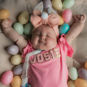 Masterfully navigating a baby in one arm and steering a stroller filled with medical equipment and monitors with the other, Deja Adams and her daughter, Jadai, emerged from their clinic appointment with reports of excellent progress. At 13 months old, Jadai is a sweet bundle of resilience, rocking her tracheostomy like it’s the cutest accessory…